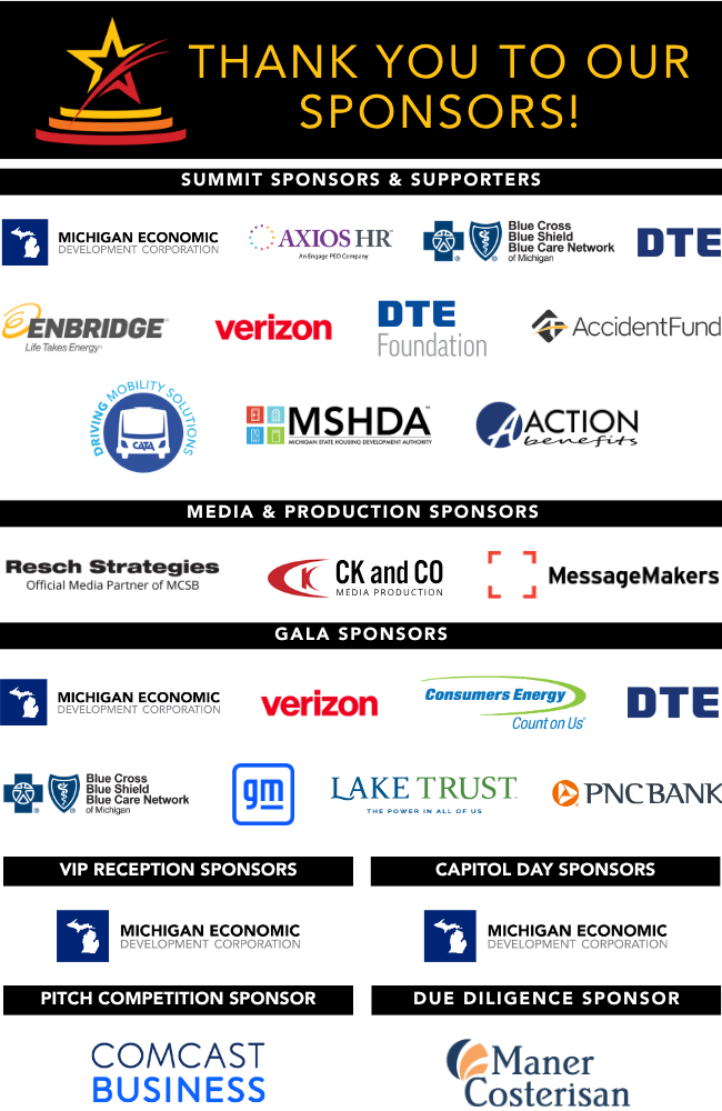 Michigan Celebrates Small Business is made possible through the dedication of our annual sponsors, founding organizations, and advisory committee. Their commitment helps us honor entrepreneurs, foster growth, and keep Michigan’s small business community thriving.